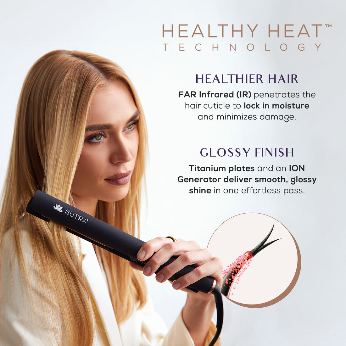 Resultados sedosos, brillantes y sin frizz desde la primera pasada.