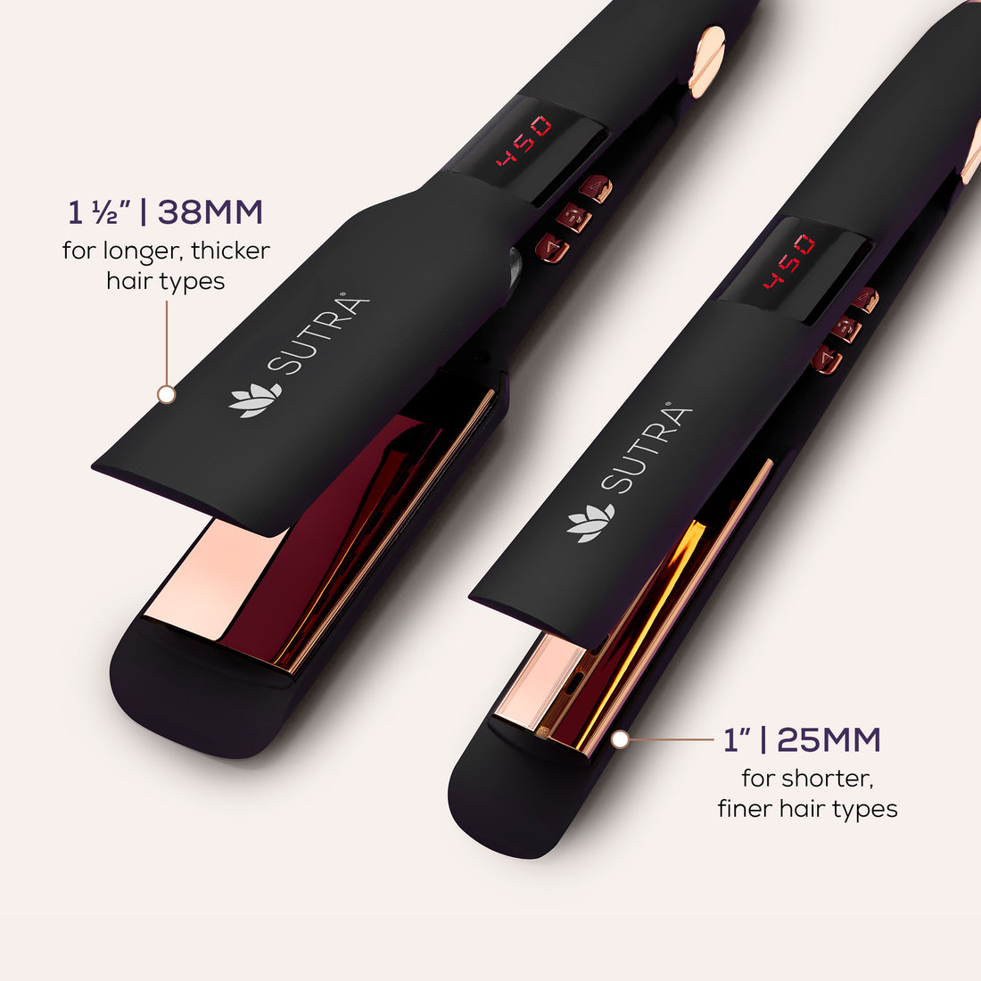 Placas flotantes de titanio de 1.5”: cubren más superficie para un alisado rápido y uniforme.